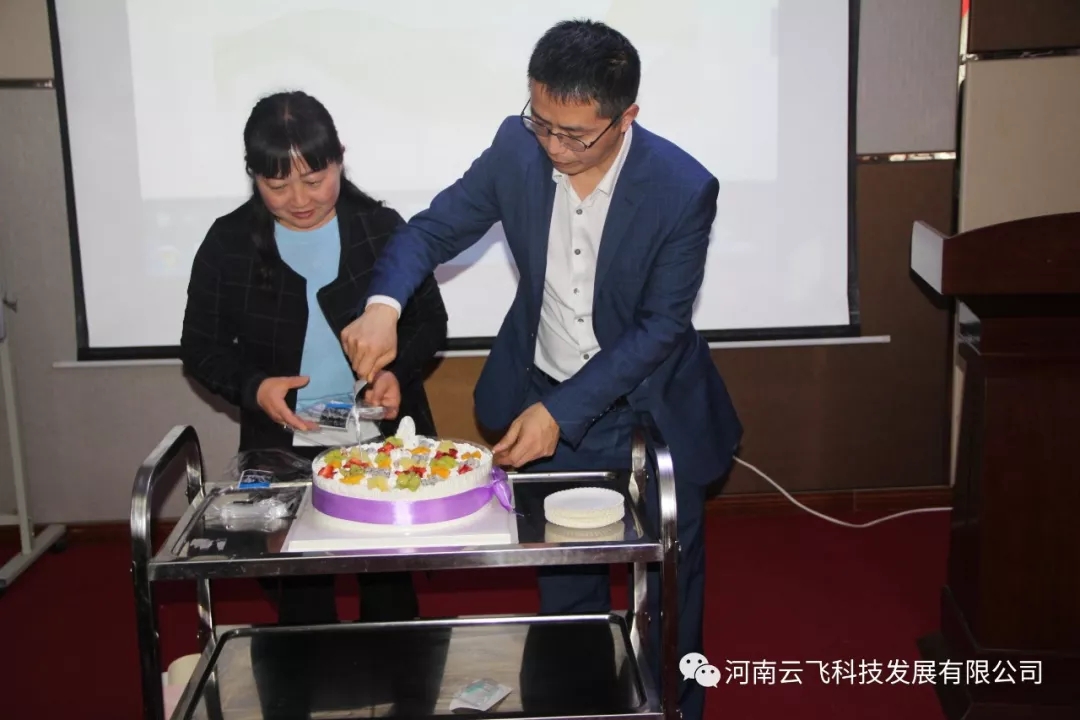 這個(gè)是一個(gè)神秘節(jié)目,公司借季度會(huì)議,對(duì)于四月份的生日的員工:陳達(dá)、鄭靜利,送上蛋糕和禮品!周總為生日員工切蛋糕!不過遺憾的是,陳達(dá)作為公司的副經(jīng)理,因?yàn)楣ぷ髟蛲獬龀霾,未能到場!為此周總組織大家為陳總錄了視頻,以表祝福!