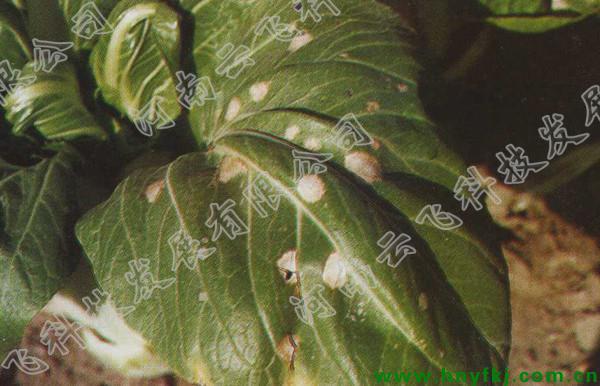 油菜整個(gè)生育期均可被害,病斑在老葉上較多,初在葉上出現(xiàn)灰褐色或黃白色圓形小病斑,后逐漸擴(kuò)大為圓形或近圓形大斑,邊緣帶綠色,中央灰白色至黃白色,病部稍凹陷變薄,易于破裂,濕度大時(shí)病斑背面產(chǎn)生淺灰色霉?fàn)钗,病斑直?.3~1mm,有時(shí)有輪紋。嚴(yán)重時(shí)病斑相互聯(lián)合形成大斑,致葉片枯死。